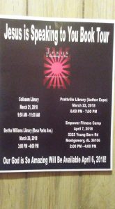 Good Afternoon …to God be the glory…here’s the Jesus is Speaking to You Flier..come out & support…the book is still available as well as T-Shirts..have a blessed afternoon…be blessed & also be encouraged